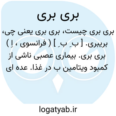 بریبری. [ ب ِ ب ِ ] ( فرانسوی، اِ ) بری بری. بیماری عصبی ناشی از کمبود ویتامین ب در غذا. عده ای هم معتقدند که عفونی است. در نقاطی که سکنه آن منحصراً برنج پاک کرده میخورند شیوع دارد. ( از دایرة المعارف فارسی ).