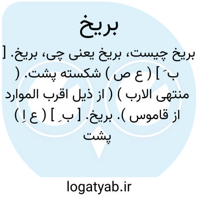 بریخ. [ ب ِ ] ( ع اِ ) پشت و ظَهر، وگویند پشت منحنی و خمیده. ( از ذیل اقرب الموارد ).