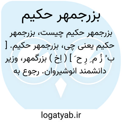 بزرجمهر حکیم. [ ب ُ زُ م ِ رِ ح َ ] ( اِخ ) بزرگمهر، وزیر دانشمند انوشیروان. رجوع به چهارمقاله ص 176 و بزرجمهر بختگان و بزرگمهر شود.
