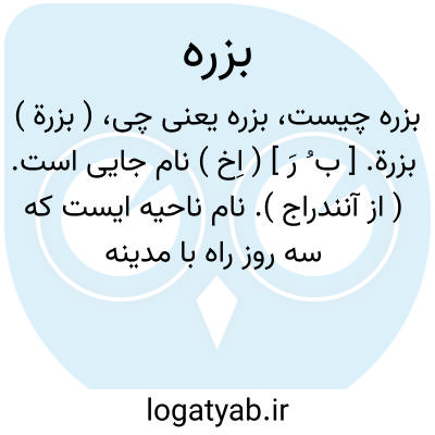 ( بزرة ) بزرة. [ ب ُ رَ ] ( اِخ ) نام جایی است. ( از آنندراج ). نام ناحیه ایست که سه روز راه با مدینه فاصله دارد. ( از معجم البلدان ).