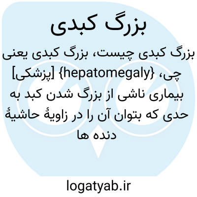 {hepatomegaly} [پزشکی] بیماری ناشی از بزرگ شدن کبد به حدی که بتوان آن را در زاویۀ حاشیۀ دنده ها لمس کرد