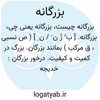 بزرگانه. [ ب ُ زُ ن َ / ن ِ ] ( ص نسبی، ق مرکب ) بمانند بزرگان. بزرگ در کمیت و کیفیت. درخور بزرگان: خدیجه دیگر روز ترتیب بساخت و مهمانی بزرگانه کرد و همه مهتران را شراب دادند و خویلد را از مهتران بیشتر دادند. ( ترجمه طبری بلعمی ).