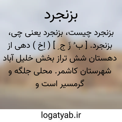 بزنجرد. [ ب ُ زَ ج ِ ] ( اِخ ) دهی از دهستان شهرنو بالاولایت باخرز بخش طیبات شهرستان مشهد.دامنه و معتدل است و سکنه آن 212 تن است. آب آن ازقنات و محصول آن غلات و زیره است. شغل اهالی زراعت وراه آن مالرو است. ( از فرهنگجغرافیایی ایران ج 9 ).