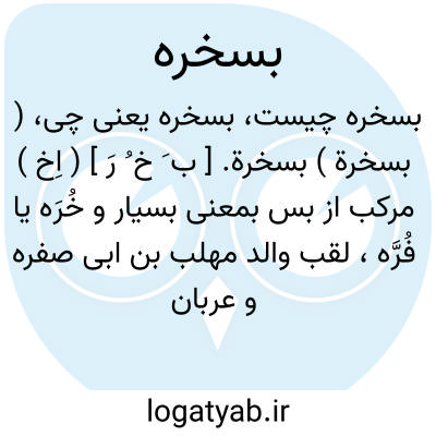( بسخرة ) بسخرة. [ ب َ خ ُ رَ ] ( اِخ ) مرکب از بس بمعنی بسیار و خُرَه یا فُرَّه، لقب والد مهلب بن ابی صفره و عربان آن را معرب کرده، بوصفره و ابوصفره گفتند. ( ابوعبیده بنقل معجم البلدان یاقوت ). رجوع به المعرب جوالیقی ص 137 س 11، ابوصفره و کلمه خارک در معجم البلدان شود.