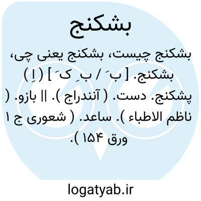 بشکنج. [ ب َ / ب ِ ک َ ] ( اِ ) پشکنج. دست. ( آنندراج ). || بازو. ( ناظم الاطباء ). ساعد. ( شعوری ج 1 ورق 154 ). || دست چپ. ( آنندراج ) ( ناظم الاطباء ) ( شعوری ج 1 ورق 154 ).