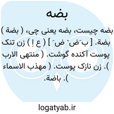 بضة. [ ب َض ْ ض َ ] ( ع اِ ) زن تنک پوست آکنده گوشت. ( منتهی الارب ). کنیزک نرم تن خواه گندم گون باشد و خواه سفید. ( منتهی الارب ) ( از اقرب الموارد ). دختر تنک پوست آکنده گوشت. ( ناظم الاطباء ). بضباضة. ( از اقرب الموارد ) ( ناظم الاطباء ). باضة. ( منتهی الارب ) ( از اقرب الموارد ). || شیر ترش. ( منتهی الارب ) ( ناظم الاطباء ).