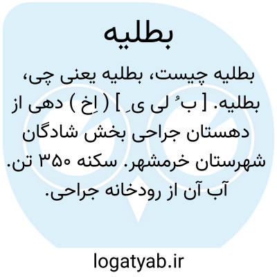 بطلیه. [ ب ُ لی ی ِ ] ( اِخ ) دهی از دهستان جراحی بخش شادگان شهرستان خرمشهر. سکنه 350 تن. آب آن از رودخانه جراحی. محصول آنجا غلات. شغل اهالی آن زراعت، حشم داری. ( از فرهنگ جغرافیایی ایران ج 6 ).