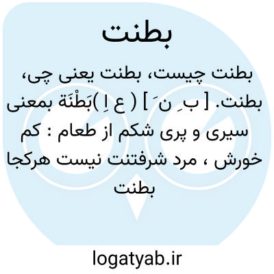 ماخوذ از تازی بطنه بمعنی سیری و پری شکم از طعام.