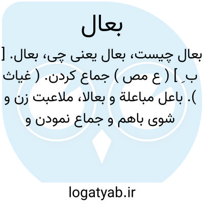 بعال. [ ب ِ ] ( ع مص ) جماع کردن. ( غیاث ). باعل مباعلة و بعالا، ملاعبت زن و شوی باهم و جماع نمودن و زناشویی کردن. ( آنندراج ) ( از منتهی الارب ). مباعله. ( زوزنی ). رجوع به مباعله شود:
