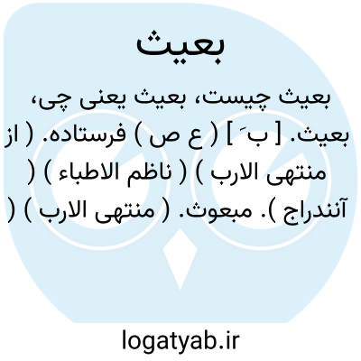 بعیث. [ ب َ ] ( ع ص ) فرستاده. ( از منتهی الارب ) ( ناظم الاطباء ) ( آنندراج ). مبعوث. ( منتهی الارب ) ( آنندراج ). و رجوع به مبعوث شود.