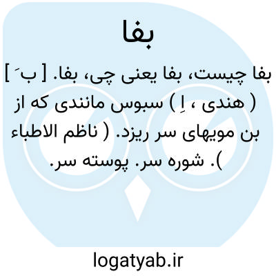بفا. [ ب َ ] ( هندی، اِ ) سبوس مانندی که از بن مویهای سر ریزد. ( ناظم الاطباء ). شوره سر. پوسته سر.