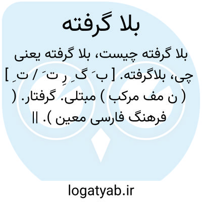 بلاگرفته. [ ب َ گ ِ رِ ت َ / ت ِ ] ( ن مف مرکب ) مبتلی. گرفتار. ( فرهنگ فارسی معین ). || خطابی نفرین آمیز کسی را.