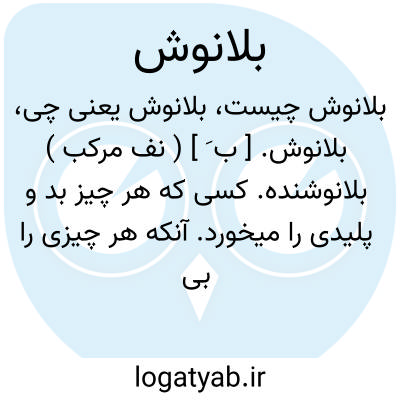 بلانوش. [ ب َ ] ( نف مرکب ) بلانوشنده. کسی که هر چیز بد و پلیدی را میخورد. آنکه هر چیزی را بی تفاوت میخورد. ( ناظم الاطباء ).
