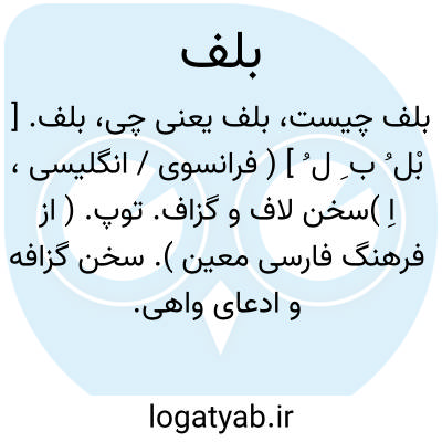 بلف. [ بْل ُ ب ِ ل ُ ] ( فرانسوی / انگلیسی، اِ )سخن لاف و گزاف. توپ. ( از فرهنگ فارسی معین ). سخن گزافه و ادعای واهی. رجوع به بلف زدن شود.