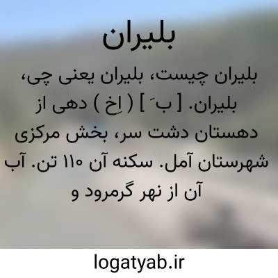 بلیران. [ ب َ ] ( اِخ ) دهی از دهستان دشت سر، بخش مرکزی شهرستان آمل. سکنه آن 110 تن. آب آن از نهر گرمرود و محصول آن لبنیات است. در تابستان تعدادی از سکنه به ییلاقات چلاو میروند. ( از فرهنگ جغرافیایی ایران ج 3 ).