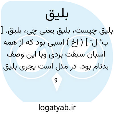 بلیق. [ ب ُ ل َ ] ( اِخ ) اسبی بود که از همه اسبان سبقت بردی وبا این وصف بدنام بود. در مثل است یجری بلیق و یُذم بلیق؛ یعنی بلیق سبقت می گیرد و نکوهش او میکنند، و آن را در حق کسی گویند که احسان کند و مردم او را به بدی یاد نمایند. ( منتهی الارب ) ( از اقرب الموارد ).