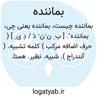 بماننده ٔ. [ ب ِ ن َن ْ دَ / دِ ی ِ ] ( حرف اضافه مرکب ) کلمه تشبیه. ( آنندراج ). شبیه. نظیر. همتا. بمانند. رجوع به بمانند و مانند شود: بماننده نامدار اردشیر فزاینده و فرخ و دلپذیر.فردوسی.بی هیچ اختیار من این جانگزای رنج در گردنم فتاده بماننده دوا.واله هروی ( از آنندراج ).