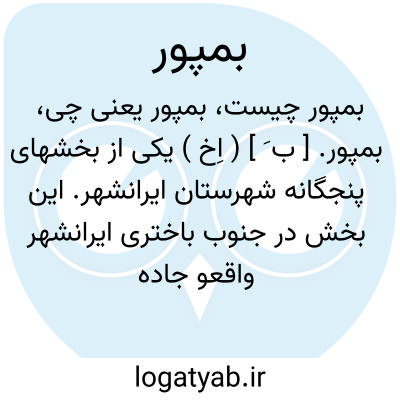 بمپور. [ ب َ ] ( اِخ ) یکی از بخشهای پنجگانه شهرستان ایرانشهر. این بخش در جنوب باختری ایرانشهر واقعو جاده شوسه ایرانشهر به چاه بهار از وسط این بخش عبور می کند. این بخش محدود است از شمال به بخش حومه ٔایرانشهر، از شرق به بخش سرباز از جنوب به بخش نیک شهر از شهرستان چاه بهار از غرب به بخش کهنوج از شهرستان جیرفت. بخش بمپور به دو قسمت کوهستانی و جلگه تقسیم میشود. آب مشروب قرای بخش بمپور از رودخانه و قنات و چشمه تأمین میشود. و محصول عمده آنجا غلات، خرما، حبوب، ذرت و لبنیات است. این بخش از پنج دهستان و123 آبادی بزرگ و کوچک تشکیل میشود و جمعیت آن قریب چهل هزار تن است. ( از فرهنگ جغرافیایی ایران ج 8 ).
