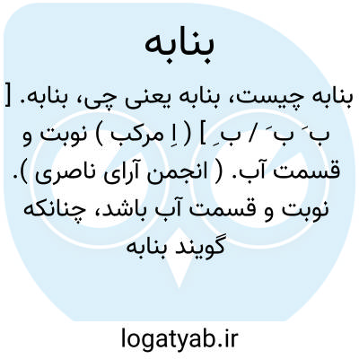 بنابه. [ ب َ ب َ / ب ِ ] ( اِ مرکب ) نوبت و قسمت آب. ( انجمن آرای ناصری ). نوبت و قسمت آب باشد، چنانکه گویند بنابه ماست یعنی نوبت ماست. ( آنندراج ) ( برهان ) ( ناظم الاطباء ).