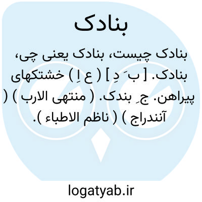 بنادک. [ ب َ دِ ] ( ع اِ ) خشتکهای پیراهن. ج ِ بندک. ( منتهی الارب ) ( آنندراج ) ( ناظم الاطباء ).