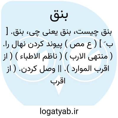بنق. [ ب َ ] ( ع مص ) پیوند کردن نهال را. ( منتهی الارب ) ( ناظم الاطباء ) ( از اقرب الموارد ). || وصل کردن. ( از اقرب الموارد ).