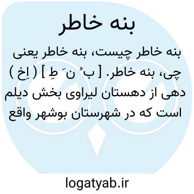 بنه خاطر. [ ب ُ ن َ طِ ] ( اِخ ) دهی از دهستان لیراوی بخش دیلم است که در شهرستان بوشهر واقع شده است. دارای 200 تن سکنه است. ( از فرهنگ جغرافیایی ایران ج 7 ).