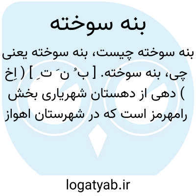 بنه سوخته. [ ب ُ ن َ ت ِ ] ( اِخ ) دهی از دهستان شهریاری بخش رامهرمز است که در شهرستان اهواز واقع شده است. دارای 200 تن سکنه است. ( از فرهنگ جغرافیائی ایران ج 6 ).