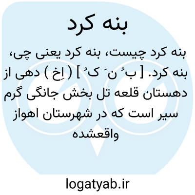 بنه کرد. [ ب ُ ن َ ک ُ ] ( اِخ ) دهی از دهستان قلعه تل بخش جانگی گرم سیر است که در شهرستان اهواز واقعشده است. دارای 160 تن سکنه است. این آبادی را کمردراز نیز می گویند. ( از فرهنگ جغرافیائی ایران ج 6 ).