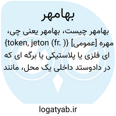 {token, jeton (fr. )} [عمومی] مهره ای فلزی یا پلاستیکی یا برگه ای که در دادوستد داخلی یک محل، مانند غذاخوری، به کار رود و قابل تبدیل به پول باشد