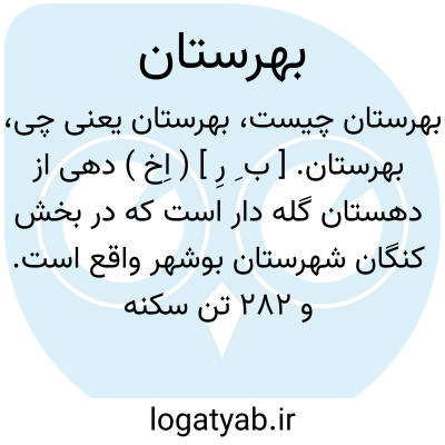 بهرستان. [ب ِ رِ] روستایی از بخش اسیر است که در شهرستان مهر واقع است؛ و 620نفر جمعیت دارد. 'تاریخچه روستای بهرستان