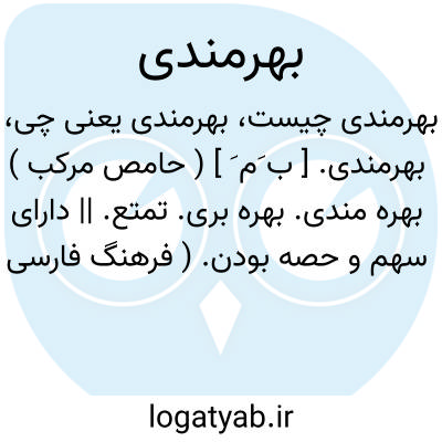 بهرمندی. [ ب َم َ ] ( حامص مرکب ) بهره مندی. بهره بری. تمتع. || دارای سهم و حصه بودن. ( فرهنگ فارسی معین ).