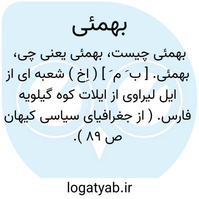 بهمئی. [ ب َ م َ ] ( اِخ ) شعبه ای از ایل لیراوی از ایلات کوه گیلویه فارس. ( از جغرافیای سیاسی کیهان ص 89 ).