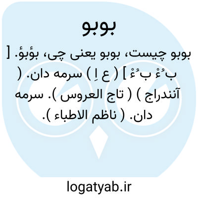 بؤبؤ. [ ب ُءْ ب ُءْ ] ( ع اِ ) سرمه دان. ( آنندراج ) ( تاج العروس ). سرمه دان. ( ناظم الاطباء ). بعضی آنرا یؤیؤ خوانند. || اصل. ( آنندراج ): هو بؤبوءالکرم؛ او اصل کرم است. و کذلک هو بؤبوءالمجد؛ او اصل مجد است. ( منتهی الارب ) ( ناظم الاطباء ) ( از اقرب الموارد ). اصل مردم و جز او. ( مهذب الاسماء ). || مهتر زیرک. ( آنندراج ) ( ناظم الاطباء ) ( منتهی الارب ) ( از اقرب الموارد ). || بدن ملخ. ( آنندراج ). || مردم چشم. ( منتهی الارب ) ( آنندراج ) ( ناظم الاطباء ). || میانه چیزی. ( آنندراج ) ( ناظم الاطباء ). || دانشمند. ( ناظم الاطباء ).