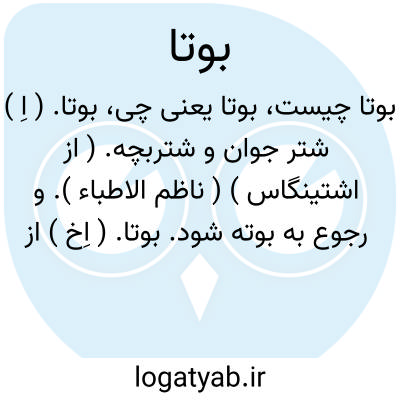 بوتا. ( اِخ ) از علمائی است که اکتشافاتی در نینوا کرده و ثابت کرده که خط سوم کتیبه های هخامنشی، همان خط آسور و بابلی است. و دیگر شکی نماند که شاهان هخامنشی بعد از زبان پارسی قدیم و عیلامی، زبان و خط آسور و بابلی را که زبان و خط نخستین مردم متمدن آسیای پیشین بوده، استعمال کرده اند. ( از ایران باستان ج 1 ص 47 ). رجوع به دایرة المعارف فارسی شود.