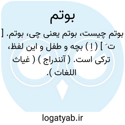 بوتم. [ ت َ ] ( اِ ) بچه و طفل و این لفظ، ترکی است. ( آنندراج ) ( غیاث اللغات ).