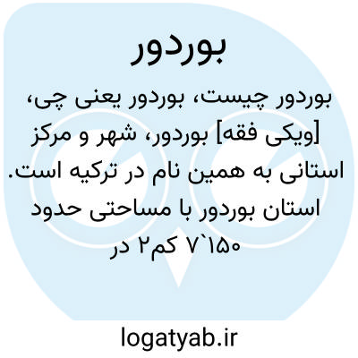 [ویکی فقه] بوردور، شهر و مرکز استانی به همین نام در ترکیه است. استان بوردور با مساحتی حدود ۱۵۰`۷ کم۲ در جنوب غربی ترکیه واقع است.