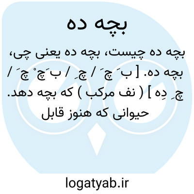 بچه ده. [ ب َ چ َ / چ ِ / ب َچ ْ چ َ / چ ِ دِه ] ( نف مرکب ) که بچه دهد. حیوانی که هنوز قابل زاییدن باشد. ( ناظم الاطباء ). که نتاج آرد. که بر تواند خوردن.