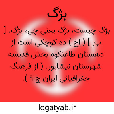 بژگ. [ ب ِ ] ( اِخ ) ده کوچکی است از دهستان طاغنکوه بخش فدیشه شهرستان نیشابور. ( از فرهنگ جغرافیائی ایران ج 9 ).