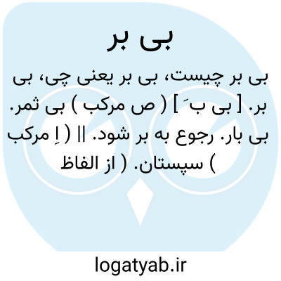 بی بر. [ بی ب َ ] ( ص مرکب ) بی ثمر. بی بار. رجوع به بر شود. || ( اِ مرکب ) سپستان. ( از الفاظ الادویه ). گیاهی است که از آن ترشی اندازند. ( یادداشت بخط مؤلف ). فلفل سبز ( لهجه قزوین ).