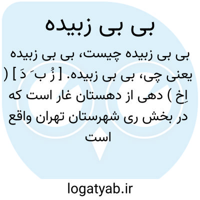 بی بی زبیده. [ زُ ب َ دَ ] ( اِخ ) دهی از دهستان غار است که در بخش ری شهرستان تهران واقع است و253 تن سکنه دارد. ( از فرهنگ جغرافیای ایران ج 1 ).