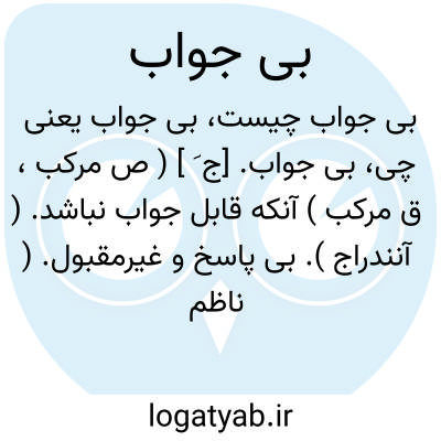 بی جواب. [ج َ ] ( ص مرکب، ق مرکب ) آنکه قابل جواب نباشد. ( آنندراج ). بی پاسخ و غیرمقبول. ( ناظم الاطباء ). سخن که نتوان آنرا جواب گفت. ( یادداشت بخط مؤلف ):