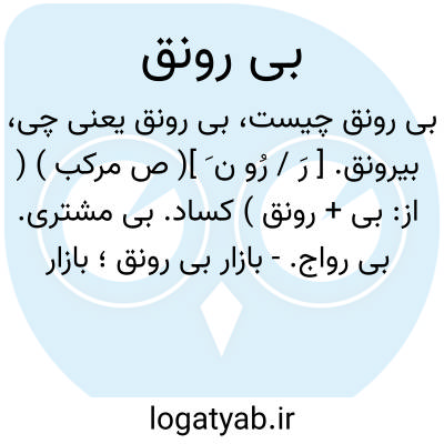بیرونق. [ رَ / رُو ن َ ]( ص مرکب ) ( از: بی + رونق ) کساد. بی مشتری. بی رواج.