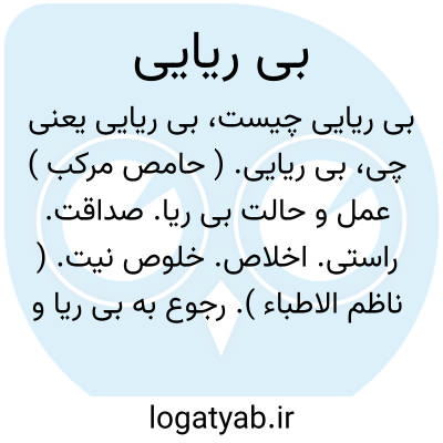 بی ریایی. ( حامص مرکب ) عمل و حالت بی ریا. صداقت. راستی. اخلاص. خلوص نیت. ( ناظم الاطباء ). رجوع به بی ریا و ریا شود.