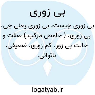 بی زوری. ( حامص مرکب ) صفت و حالت بی زور. کم زوری. ضعیفی. ناتوانی.