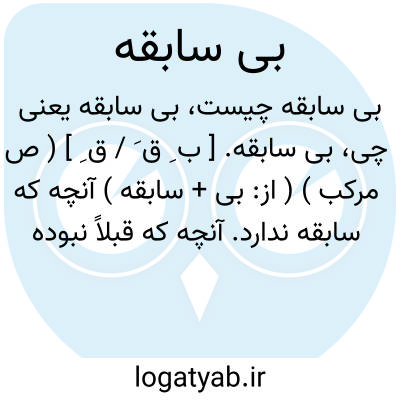 بی سابقه. [ ب ِ ق َ / ق ِ ] ( ص مرکب ) ( از: بی + سابقه ) آنچه که سابقه ندارد. آنچه که قبلاً نبوده است. که ریشه در دیرینه ندارد. که پیشینه ندارد. رجوع به سابقه شود.