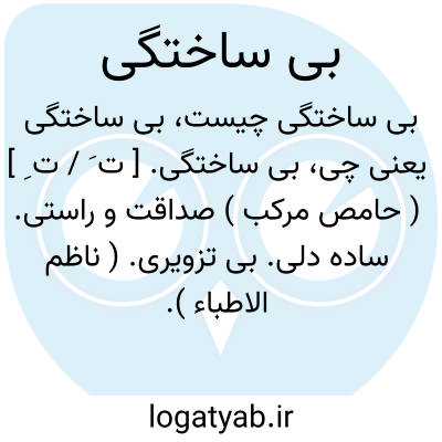 بی ساختگی. [ ت َ / ت ِ ] ( حامص مرکب ) صداقت و راستی. ساده دلی. بی تزویری. ( ناظم الاطباء ). رجوع به ساختگی شود.