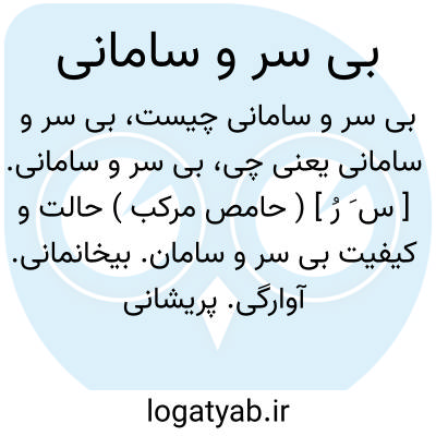 بی سر و سامانی. [ س َ رُ ] ( حامص مرکب ) حالت و کیفیت بی سر و سامان. بیخانمانی. آوارگی. پریشانی: