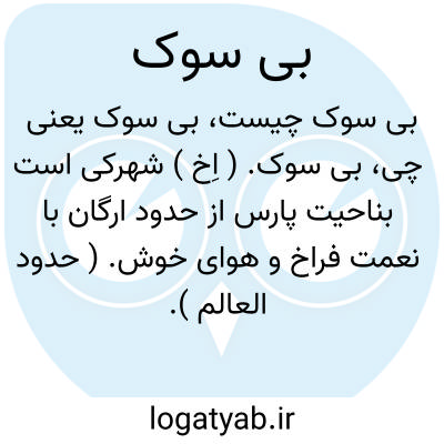 بی سوک. ( اِخ ) شهرکی است بناحیت پارس از حدود ارگان با نعمت فراخ و هوای خوش. ( حدود العالم ).