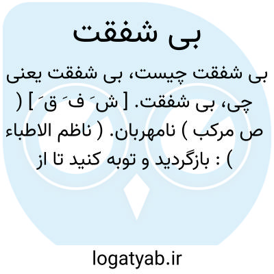 بی شفقت. [ ش َ ف َ ق َ ] ( ص مرکب ) نامهربان. ( ناظم الاطباء ): بازگردید و توبه کنید تا از دست او نجات یابید و وی نزدیکست که ببلوغ رسد و سخت بی رحم و بی شفقت است. ( قصص الانبیاء ص 179 ).
