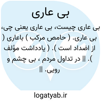 بی عاری. ( حامص مرکب ) باعاری ( از اضداد است ). ( یادداشت مؤلف ). || در تداول مردم، بی چشم و رویی. || تنبلی.